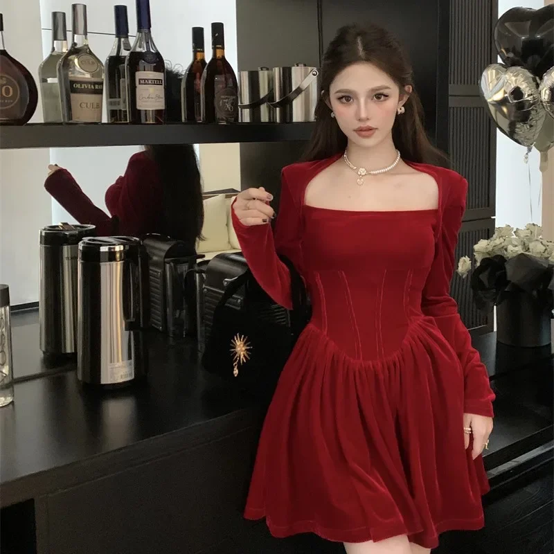Red Velvet Puff Skirt Mini Dress for Women: A Perfect Choice for Red Prom Dresses and Holiday Celebrations